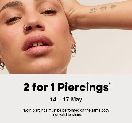 You’ll pay a piercing fee plus the cost of your preferred jewellery. We have options to suit every budget, so you can find something perfect without breaking the bank! Our most popular deal is Two piercings from $80.