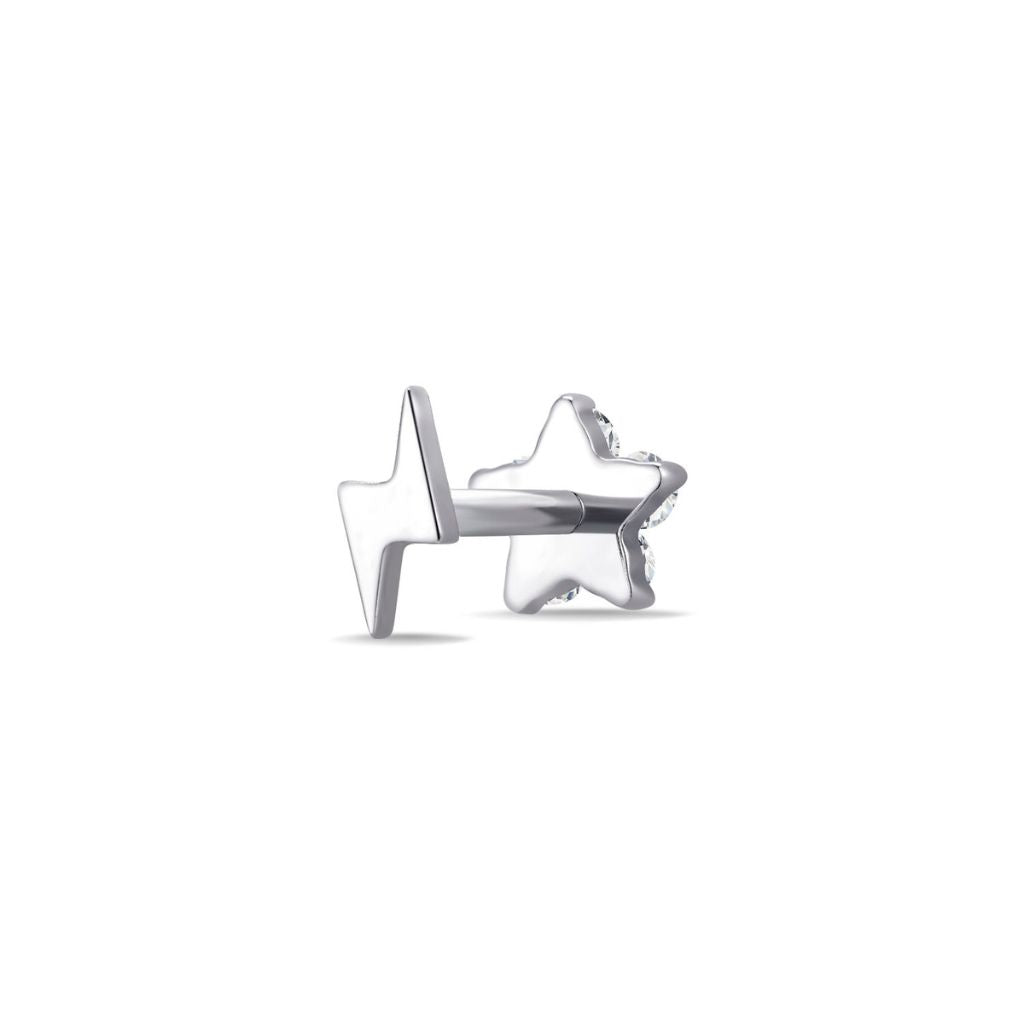 Add a little edge with this titanium reversible flatback featuring a flower and lightning design detailed with clear cubic zirconia. Flip it to wear both ways and switch your look in seconds.